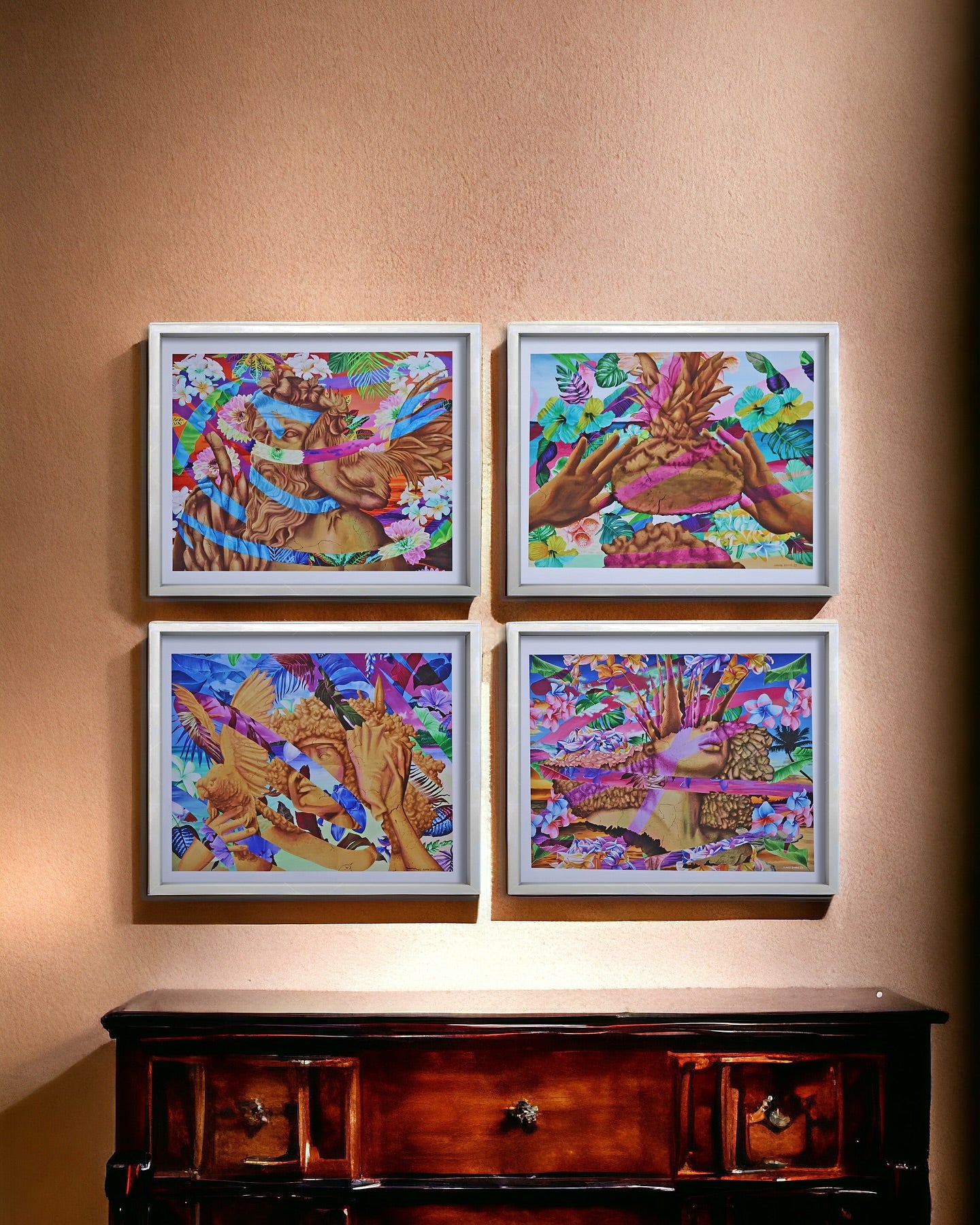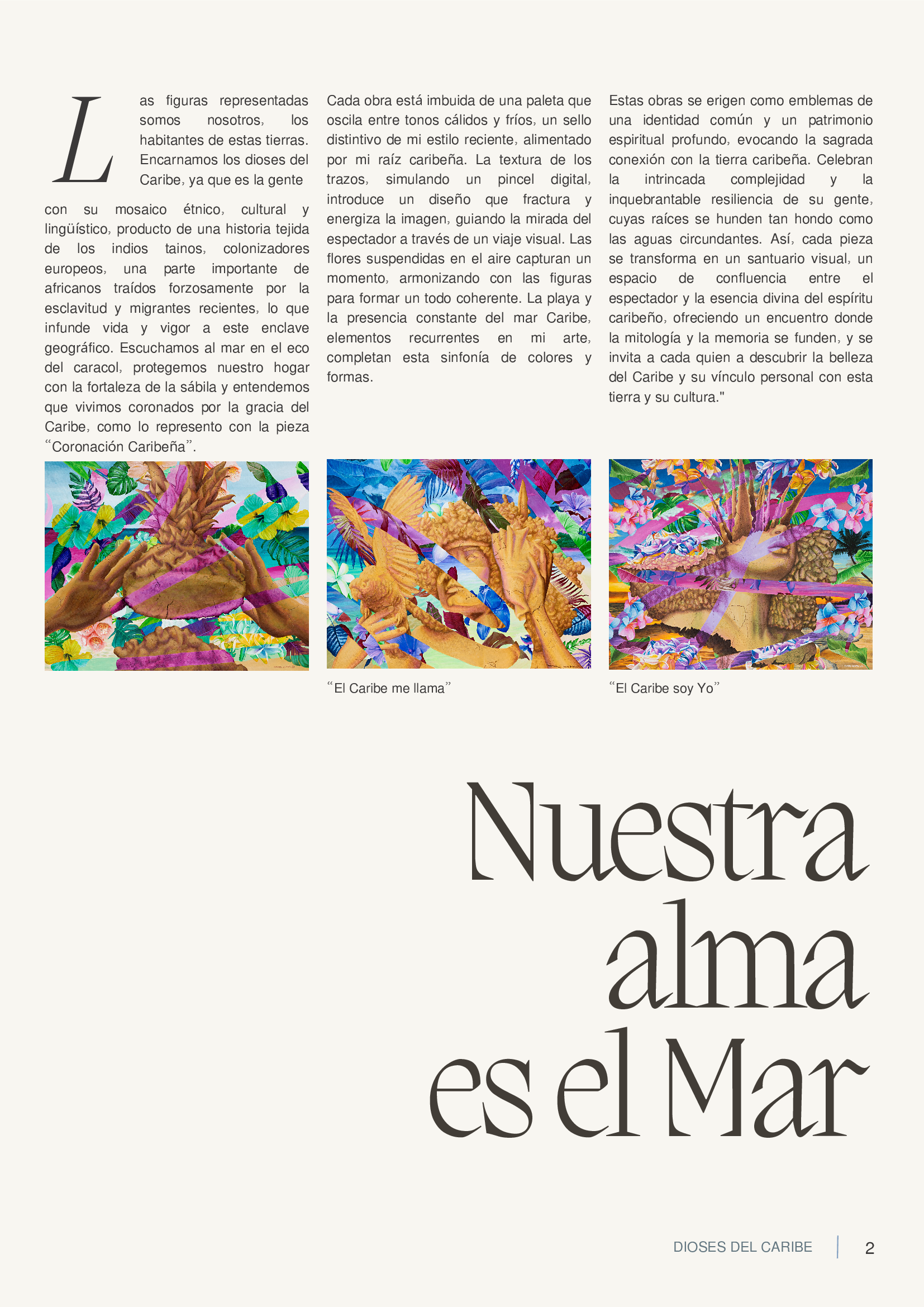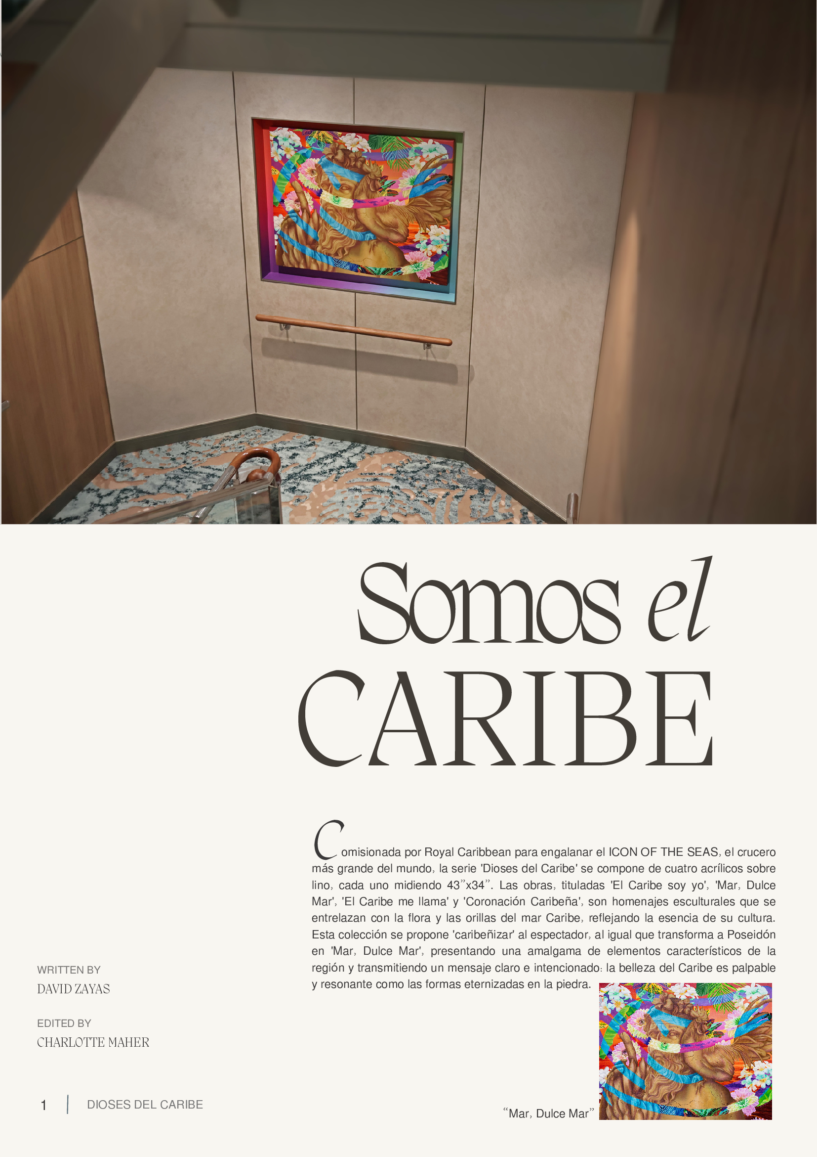 Dioses del Caribe is a new series from David Zayas, based on four original paintings commissioned by Royal Caribbean. This collection features archival-quality giclée prints, each measuring 24 x 20 inches (60.96cm x 50.8cm). Printed in Puerto Rico on 100% cotton watercolor paper (140lbs/300grms) with Ultra Chrome Pro12 ink, every print is signed, numbered, and includes a Certificate of Authenticity. Plus, explore a limited selection of inspired t-shirts and stickers. Embrace the magic of the Caribbean – thank you, and please enjoy!